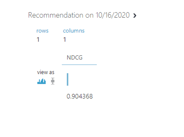 ซึ่งในตัวอย่างของเราเมื่อเรา visualize ดูเราจะพบว่ามีค่า NDCG เท่ากับ 0.904368 ซึ่งเป็นค่าที่สูง นั้นคือโมเดลของเรามีประสิทธิภาพที่ และให้ผลลัพธ์ที่ดีแก่ลูกค้า