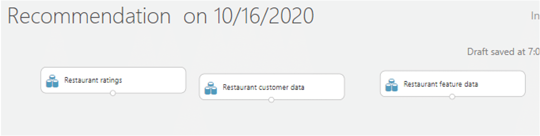 1. นำ dataset ที่ที่ชื่อ Restaurant rating, Restaurant customer data และ Restaurant Feature data จาก Sample มาวางบน workspace